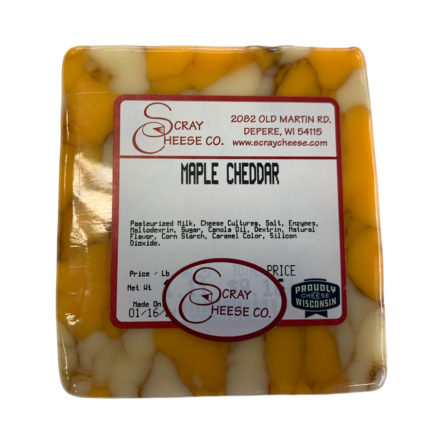 This is a 1 pound cheddar block hand pressed with maple. It is a sweet, Wisconsin Maple cheddar that will not disappoint.